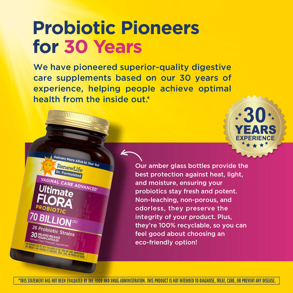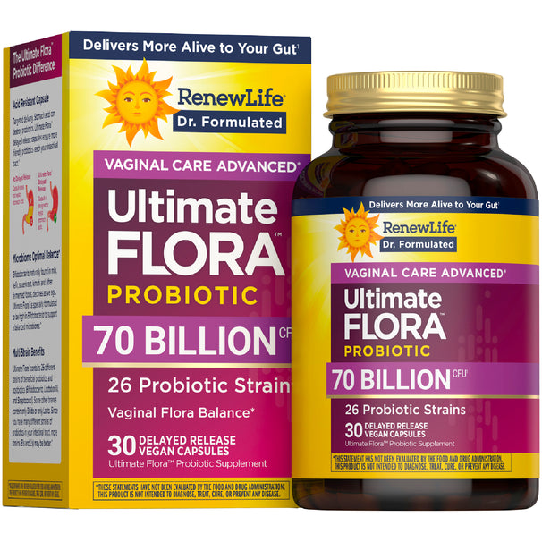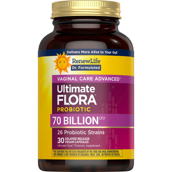 Ultimate Flora™ Vaginal Care Advanced Pre & Probiotic 70 Milliards UFC¹ est un excellent choix pour les femmes qui souhaitent un niveau puissant d'UFC pour offrir un soutien vaginal et digestif.*