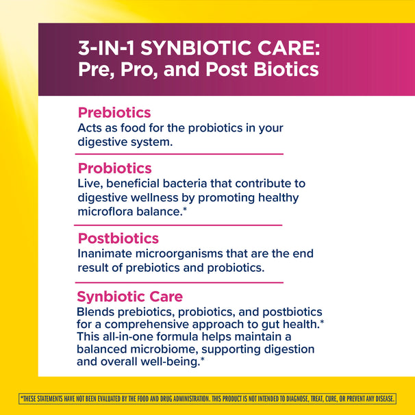 Chacun ressent les effets des probiotiques un peu différemment. Les probiotiques ne sont pas une solution instantanée — il faut du temps pour équilibrer votre microbiome.* Et chaque corps est différent, donc les résultats varieront.