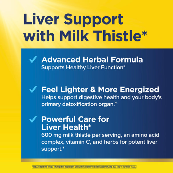 This extra strength formula is designed to nourish and support healthy liver function with a powerful blend of ingredients.* It delivers 600 mg of milk thistle extracts (including one standardized to 80% silymarin) per serving, along with vitamin C, selenium, potent herbs, and an amino acid complex to support your liver health and keep you feeling your best.*