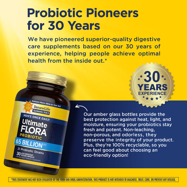 Ultimate Flora™ Men’s Once Daily Probiotic 65 Billion CFU¹ is a great choice for those who want a powerful level of CFUs to provide digestive support.*