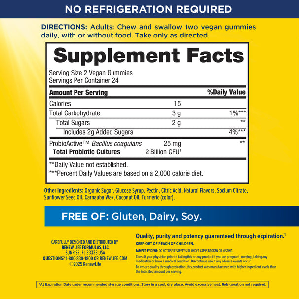 Ultimate Flora™ Extra Care Probiotic Gummies deliver targeted digestive and immune support in fruit-flavored gummies you’ll enjoy taking.* Powered by shelf-stable ProbioActive™ Bacillus coagulans, they’re specially formulated for those who experience occasional digestive discomfort.* No refrigeration means they’re always ready to go, wherever you do.